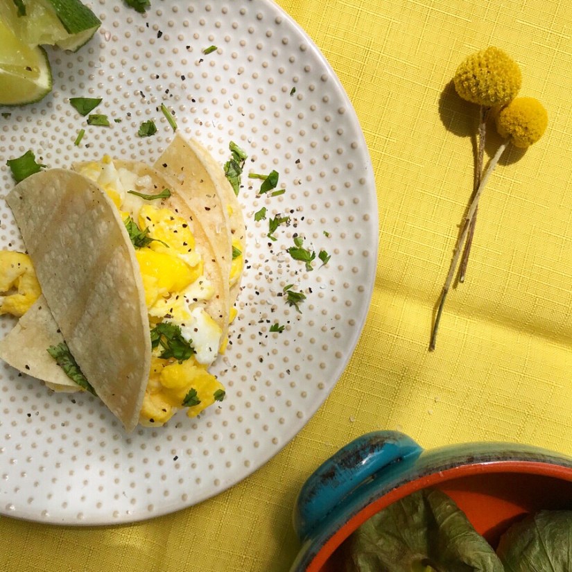 - En el comal o sartén, pon la mitad de los huevos revueltos encima de una de las tortillas, agrega la mitad del queso, cilantro y salsa de chipotle. Ponle otra tortilla arriba y voltea la sincronizada para que se caliente parejo. Haz lo mismo con todos los demás ingredientes.
