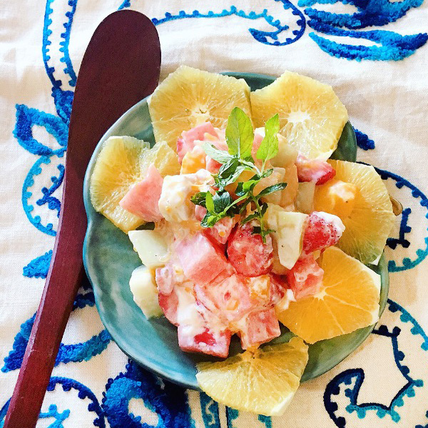 - Add yogurt and all fruits to a bowl and carefully mix together.